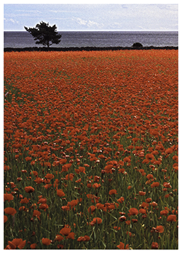 Handduk. Rött fält med Vallmo vid Gasmorhammaren